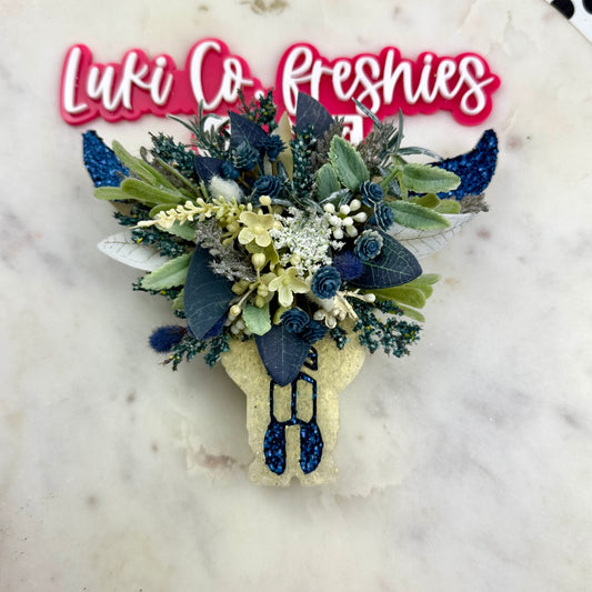 Navy Floral Bullskull Car Freshie