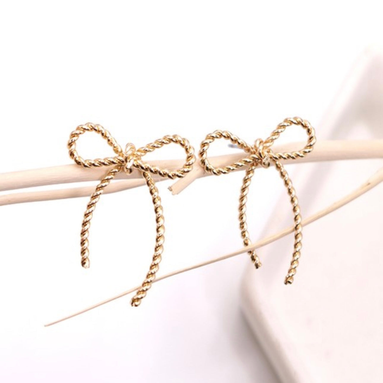 Modern, edgy bow design rope twist post earrings.