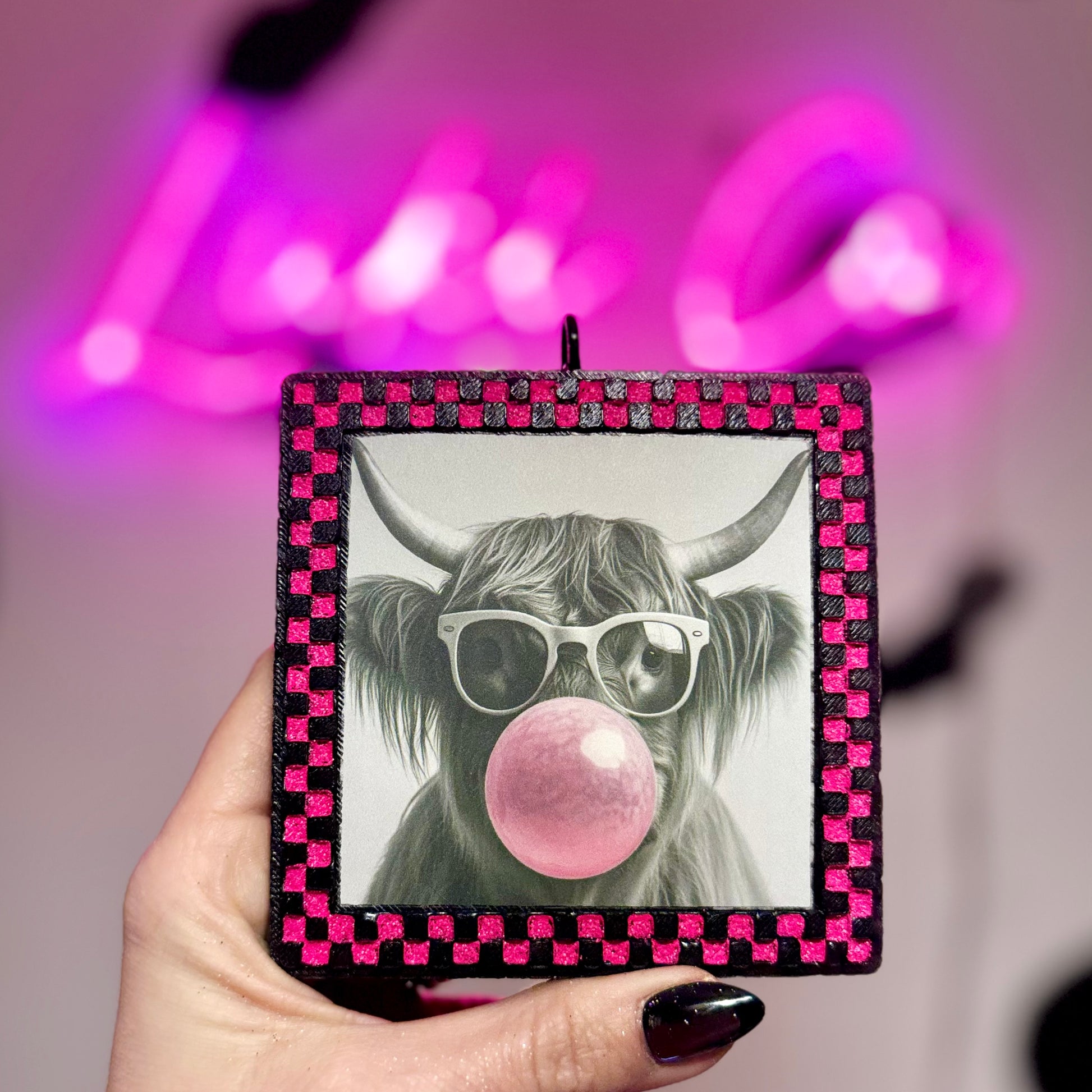 Highland Bubble Checkered Frame Glittered Car Freshies